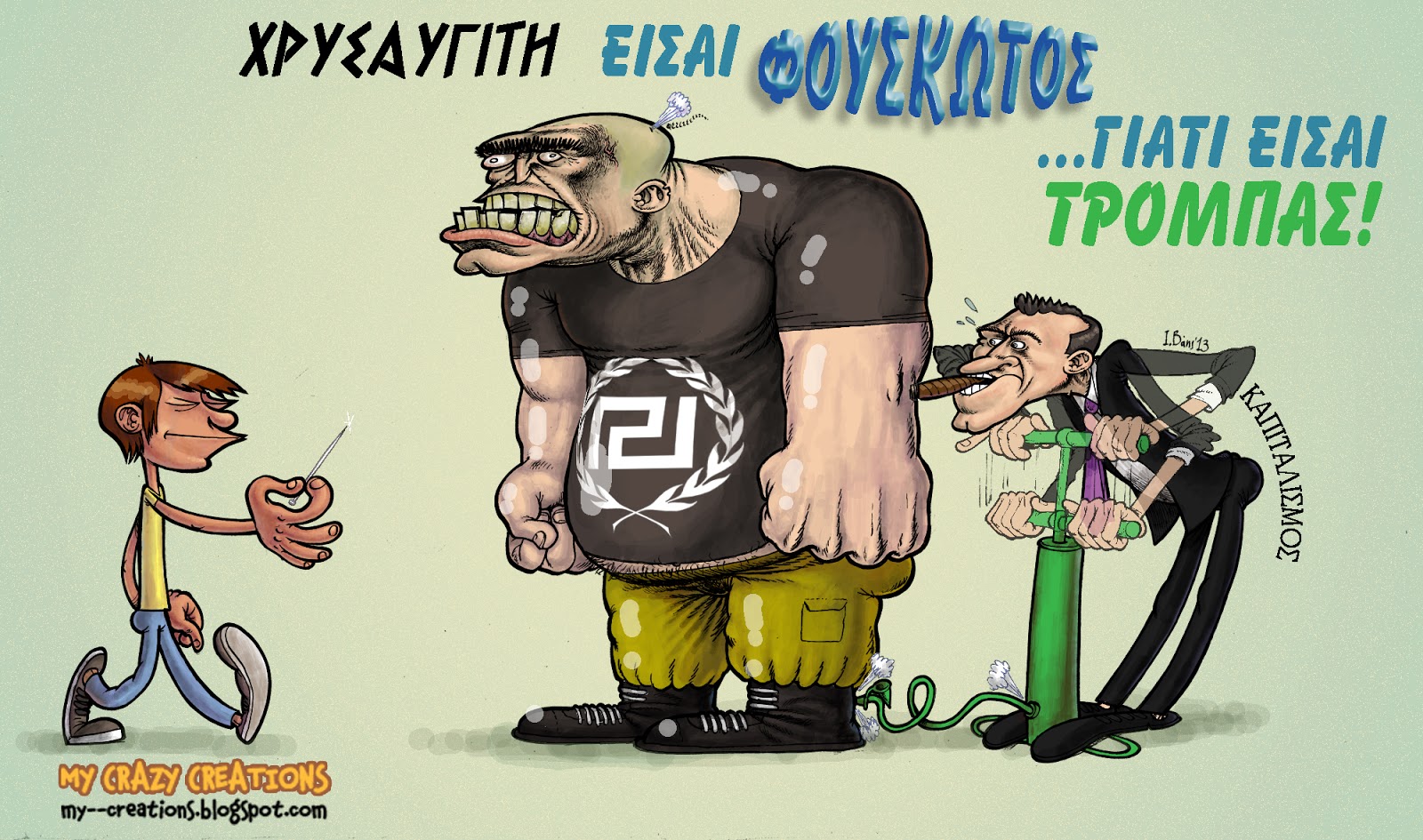 Η Χρυσή Αυγή είναι παιδί του συστήματος, διάδοχος των ταγμάτων Ασφαλείας, συμμορία θρασύδειλων τραμπούκων που χτυπούν και δολοφονούν μετανάστες, αγωνιστές και πρωτοπόρους εργάτες προσπαθώντας να σπείρουν το φόβο και την τρομοκρατία.